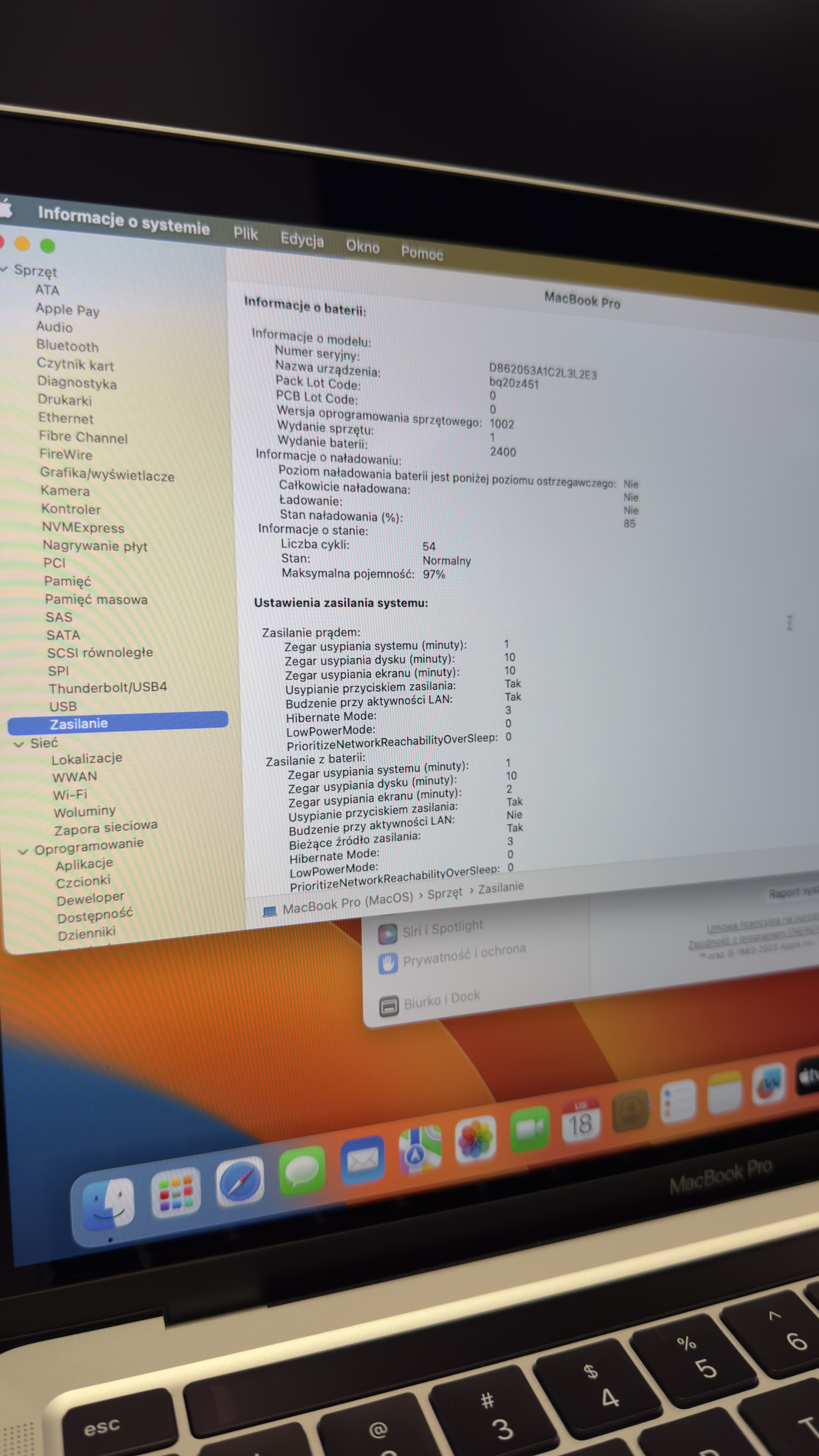Bateria | 97%, 54 cykle ładowania |