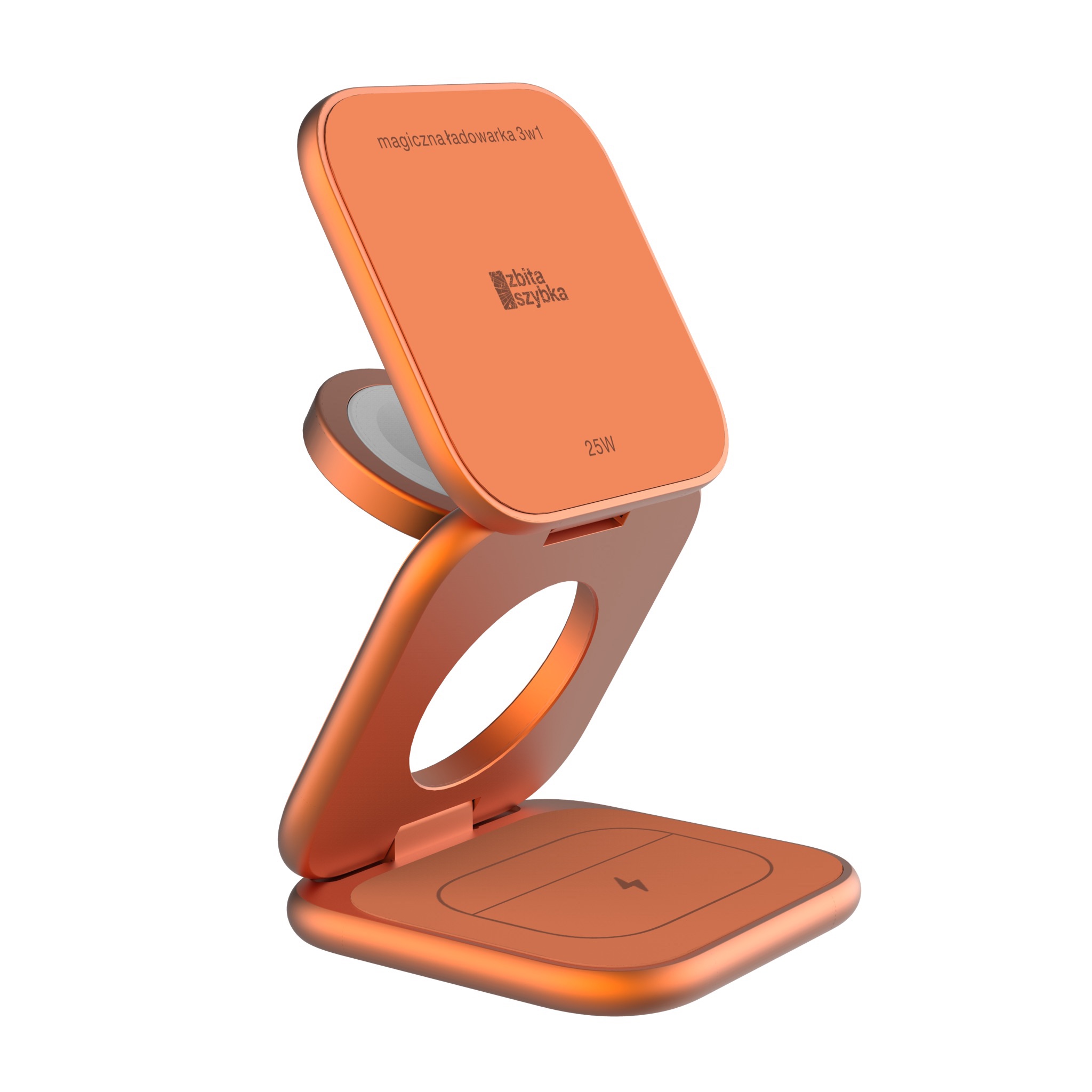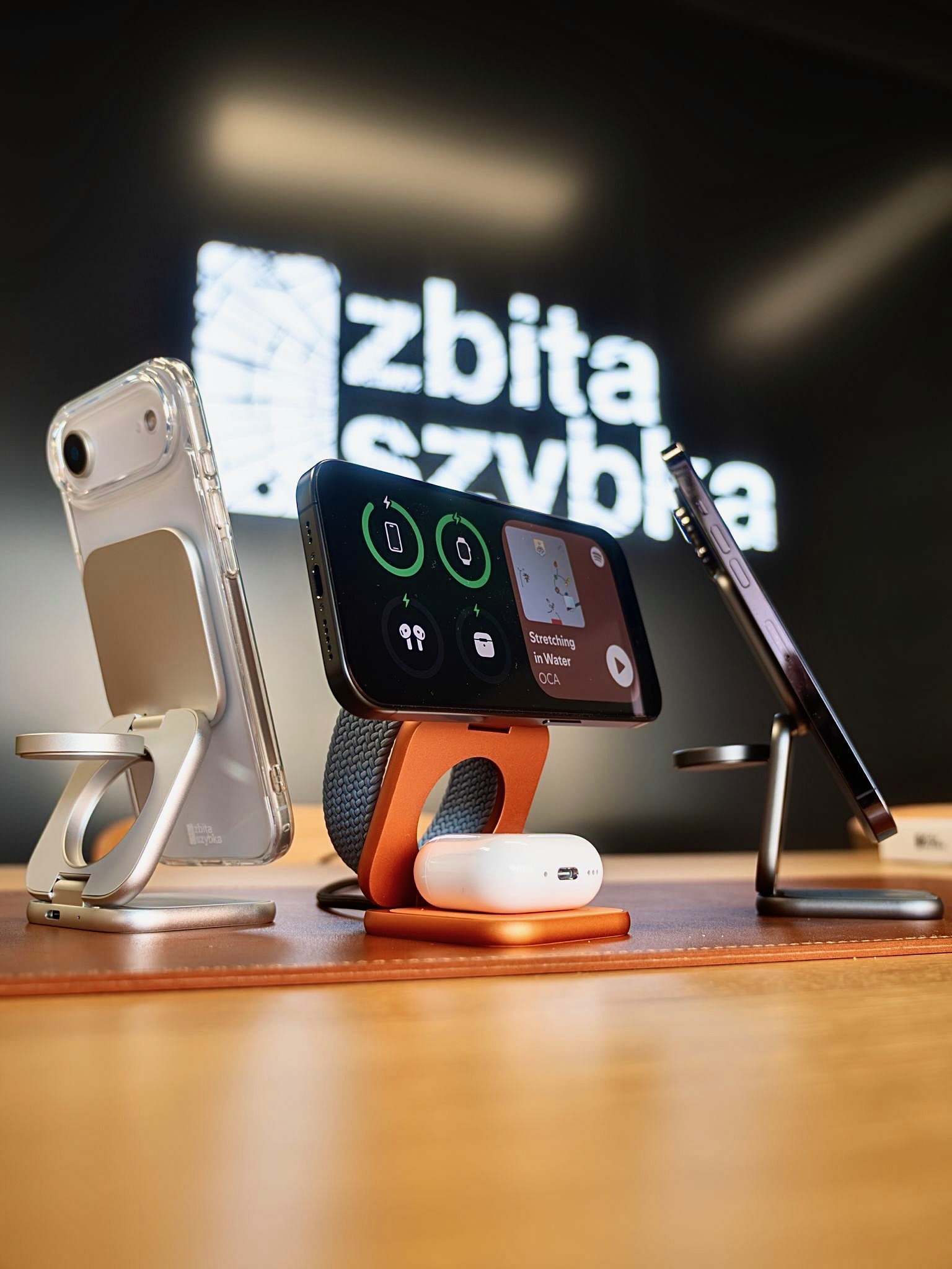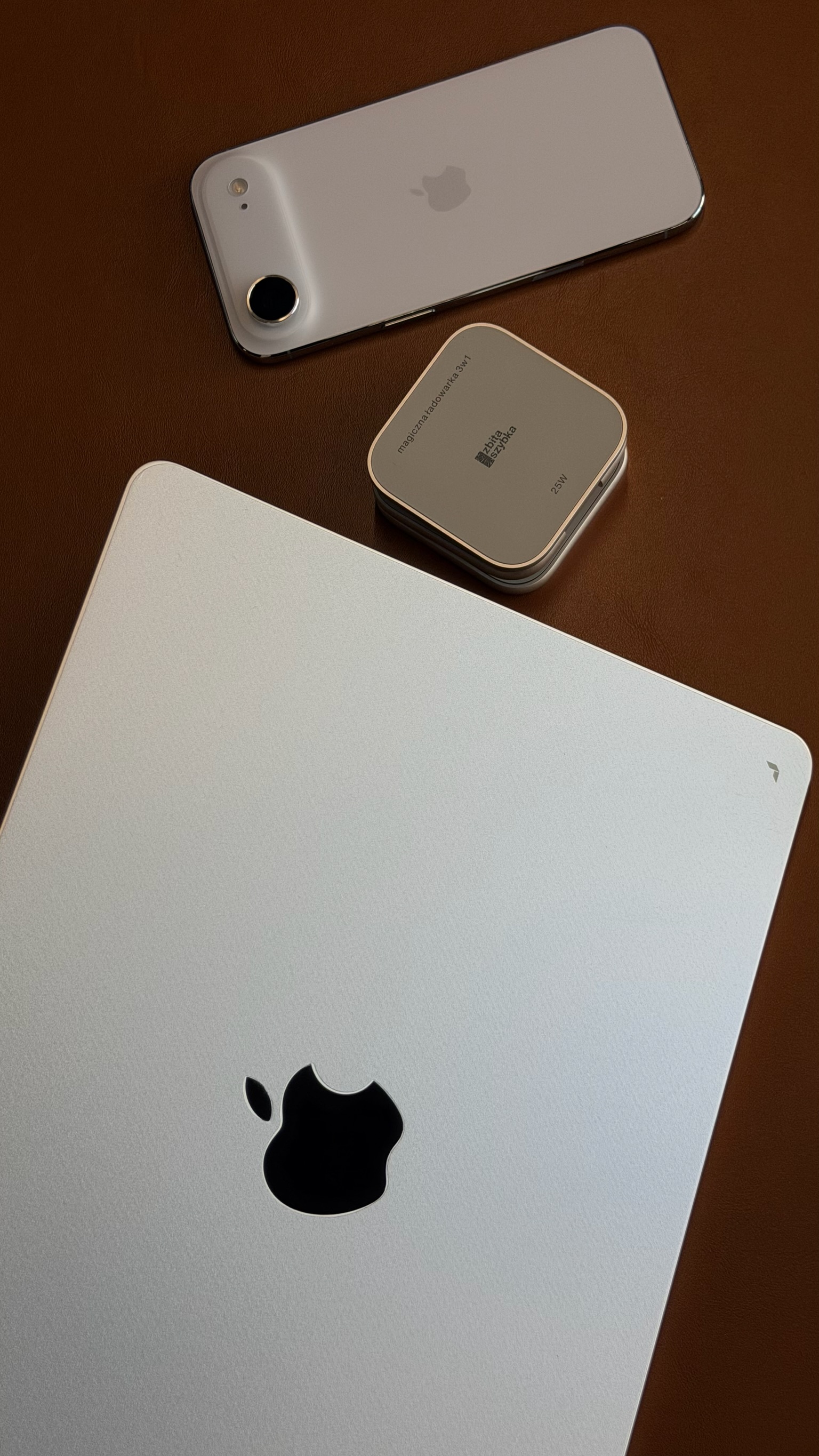 Urządzenie wspiera najnowszy standard Qi2.2, co umożliwia bezprzewodowe ładowanie iPhone’a z mocą do 25W. Apple Watch oraz AirPods naładujesz również pełną mocą – 5W.