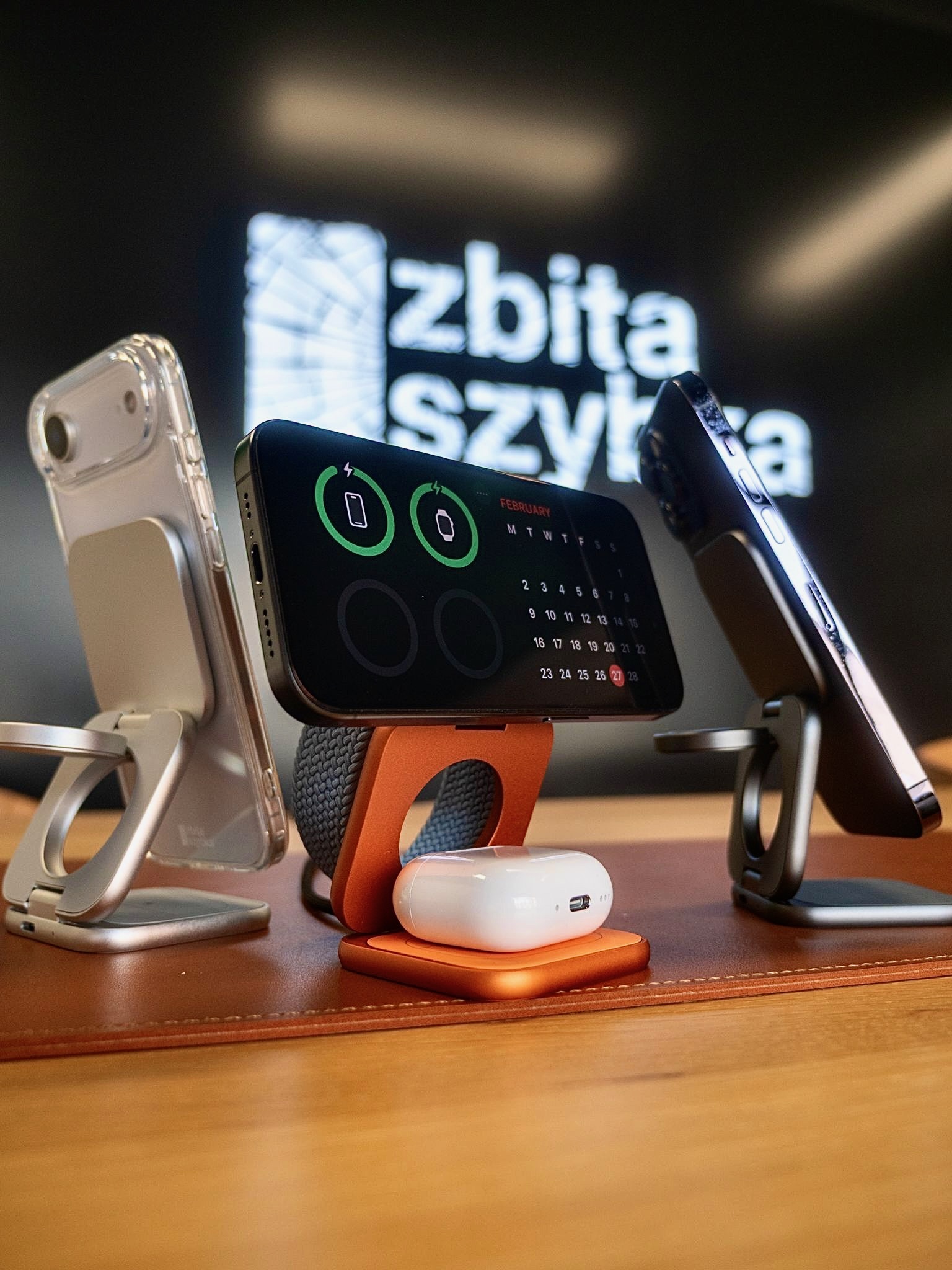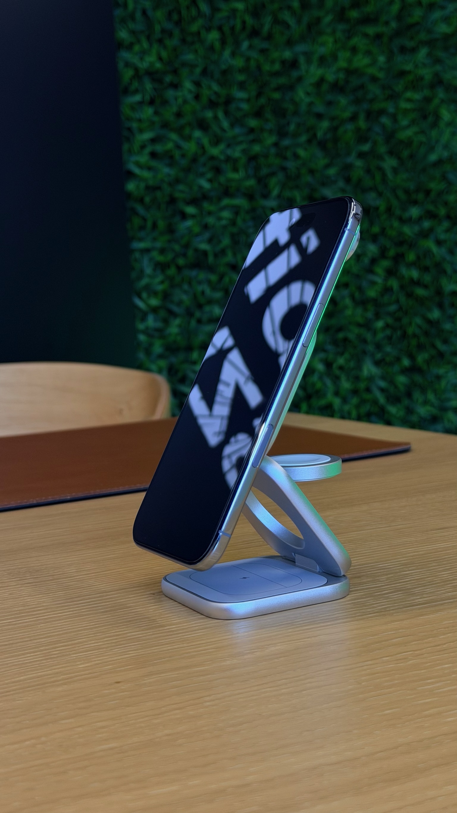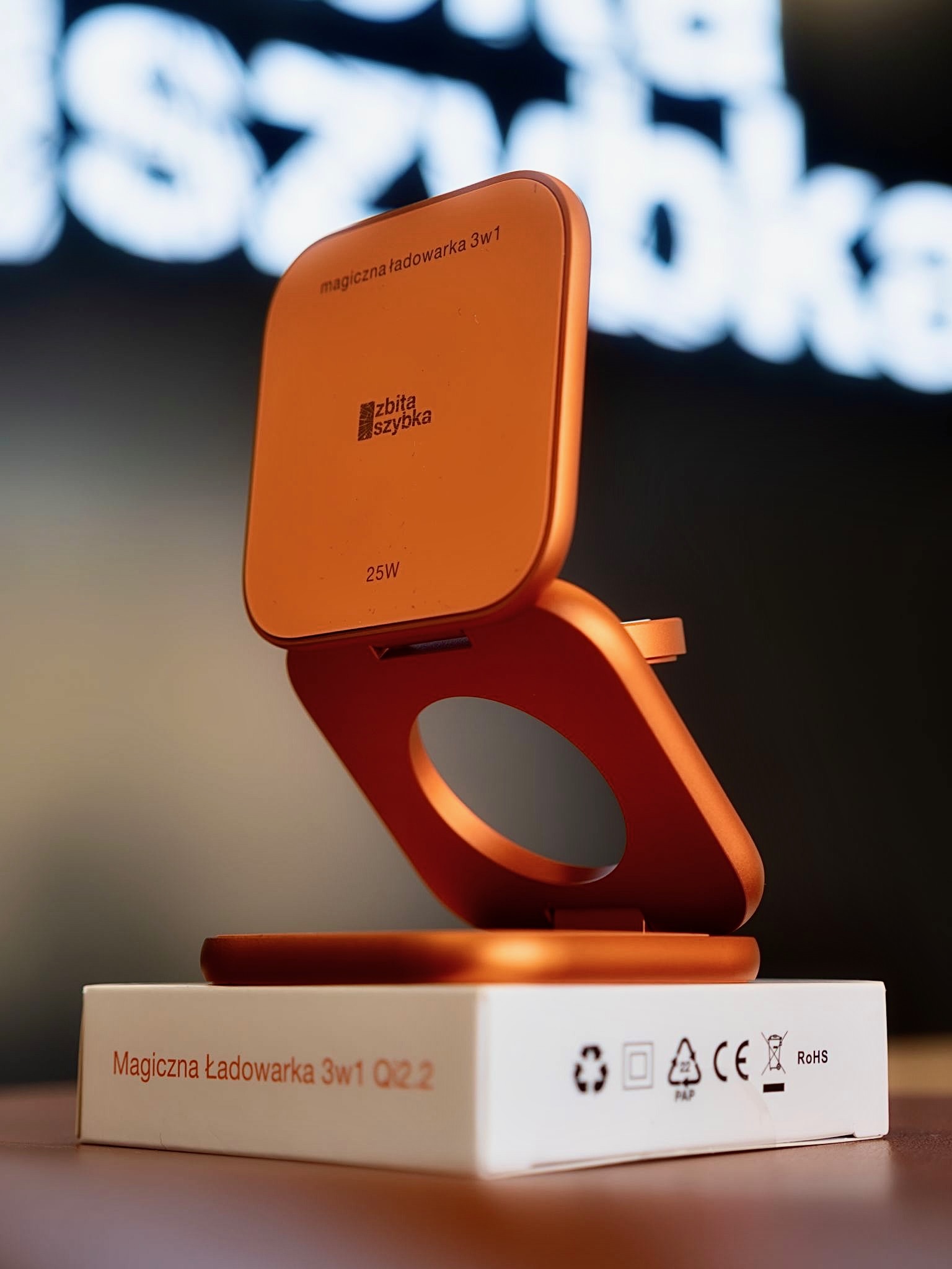 Urządzenie wspiera najnowszy standard Qi2.2, co umożliwia bezprzewodowe ładowanie iPhone’a z mocą do 25W. Apple Watch oraz AirPods naładujesz również pełną mocą – 5W.
