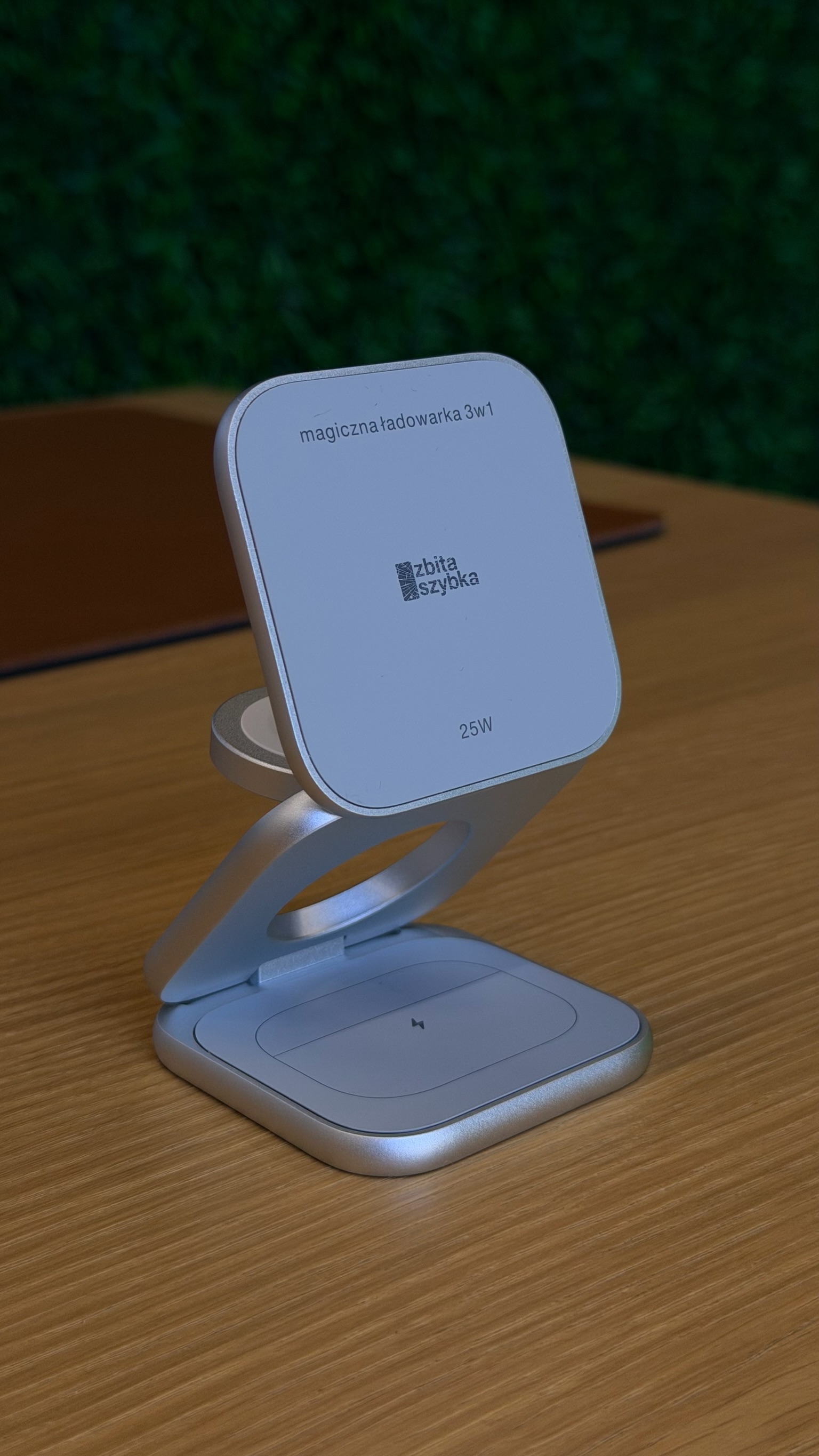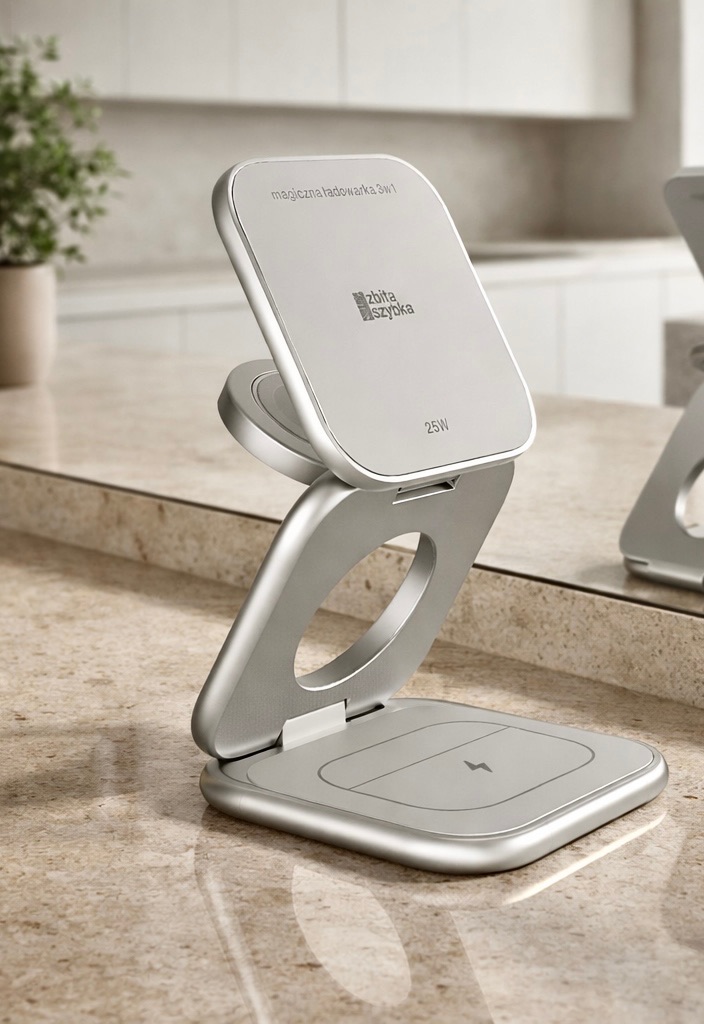 Magiczna Ładowarka 3w1 to coś więcej niż ładowarka! Dzięki specjalnej konstrukcji świetnie sprawdza się jako podstawka do prowadzenia rozmów wideo, takich jak FaceTime, czy do robienia transmisji live, zdjęć i nagrywania filmów.