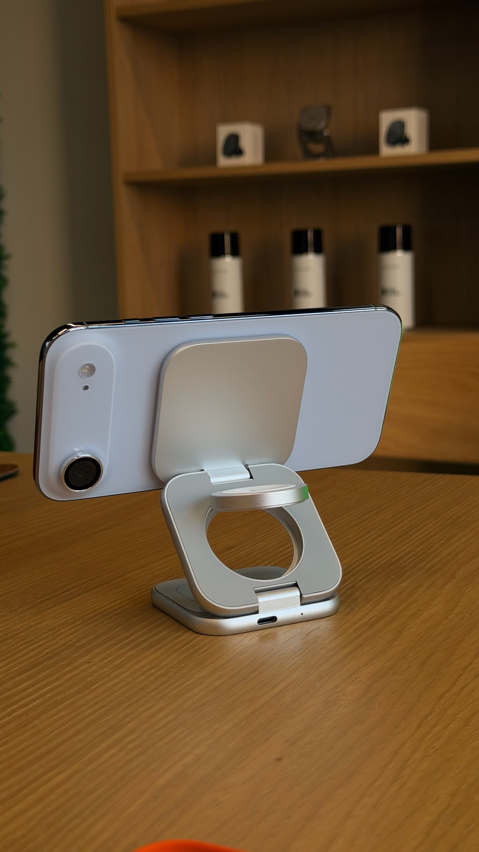 Ładowarka wykorzystuje bezprzewodowy moduł Qi2.2 z certyfikacją Apple, oferując moc ładowania do 25W. Dzięki temu iPhone 17 Pro osiąga poziom 50% baterii już po około 25 minutach, co stanowi obecnie najwyższą możliwą prędkość ładowania bezprzewodowego dla iPhone’a. Od 0% do 80% naładowania baterii w 45 minut.